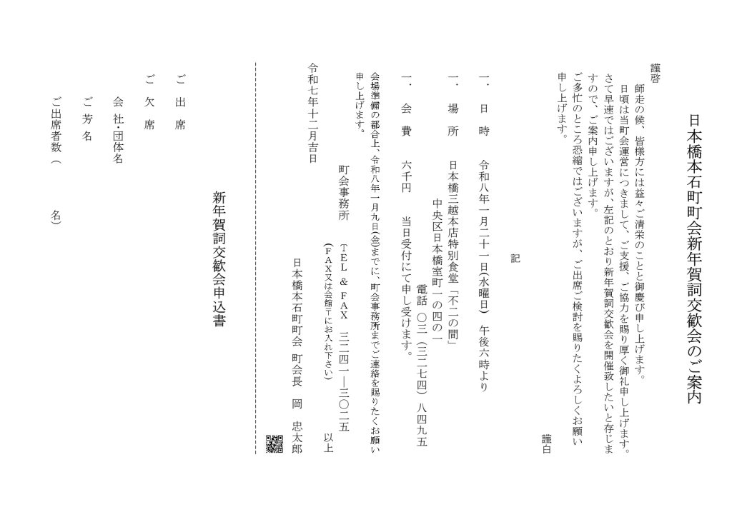 令和8年1月21日(水)18時00分から、日本橋三越本店特別食堂にて